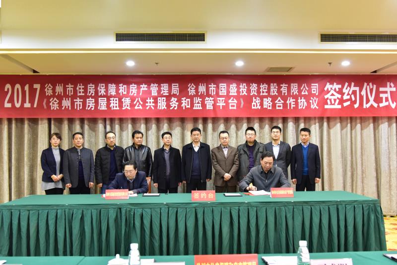 11月24日下午,徐州市住房保障和房產(chǎn)管理局與徐州市國盛投資控股有限公司在云泉山莊簽署《徐州市房屋租賃公共服務(wù)和監(jiān)管平臺》戰(zhàn)略合作協(xié)議。徐州市房管局局長閆軍、副局長司成明,國盛公司總經(jīng)理李中亞等領(lǐng)導(dǎo)出席會議并講話。