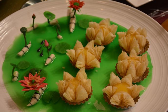 本次比賽包含切配、涼菜、熱菜、面點(diǎn)、擺臺(tái)五個(gè)項(xiàng)目,全面考察了員工的各項(xiàng)技能。切配環(huán)節(jié)主要考驗(yàn)基本刀工;涼菜、熱菜環(huán)節(jié)指定主材,鼓勵(lì)員工開(kāi)拓思維、敢于創(chuàng)新;面點(diǎn)環(huán)節(jié)比拼的是創(chuàng)意與技藝的結(jié)合;擺臺(tái)環(huán)節(jié)則更注重規(guī)范和標(biāo)準(zhǔn)。較往年相比,今年技能比武大賽的參與度、主動(dòng)性與創(chuàng)新性均有大幅提升:交叉崗位選手明顯增多,員工在扎實(shí)自身基本功的基礎(chǔ)上,開(kāi)始注重多元化發(fā)展;新進(jìn)員工表現(xiàn)踴躍,日常培訓(xùn)與比賽模式激勵(lì)了新員工迅速成長(zhǎng);創(chuàng)意與文化有機(jī)結(jié)合,特別是面點(diǎn)作品“云龍湖畔”大氣且富有內(nèi)涵,給現(xiàn)場(chǎng)觀眾留下了深刻印象。